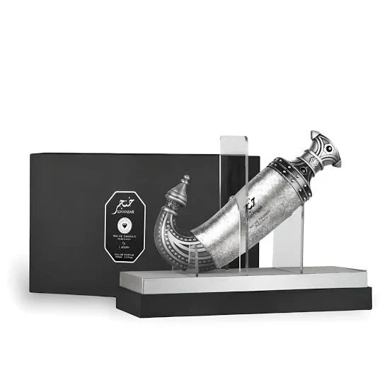 Khanjar by Lattafa Perfumes is a fragrance for women and men. Khanjar was launched in 2023. Top notes are Nutmeg, Ginger and Pimento; middle notes are Violet, Patchouli and Cashmeran ; base notes are Leather, Vetiver, Incense and Musk.